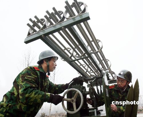 2月3日下午,安徽淮北人工影響天氣作業(yè)基地的工作人員移動(dòng)火箭發(fā)射架進(jìn)入作業(yè)狀態(tài)。當(dāng)日,淮北氣象臺(tái)舉行名為“閃電”人工催雨演練,以備戰(zhàn)可能形成催雨作業(yè)天氣條件的人工降雨。目前,安徽省遭遇特大旱情,安徽省氣象臺(tái)2月1日10時(shí)發(fā)布干旱紅色預(yù)警,預(yù)計(jì)未來(lái)一周淮河以北地區(qū)有60%以上農(nóng)作物受旱。