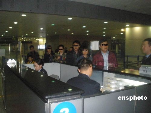 首批美國車禍幸存者5日晚飛抵上海,其中包括傷愈出院的一家三口吳守桂、包瑞華、吳雙以及一月三十日當天未參加大峽谷一日游的四名游客張欣凡、周茵、戴解華、李葉娟一行七人。中新社發(fā) 浦邊 攝