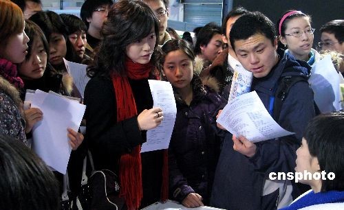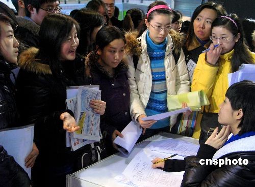 圖為大學(xué)生在一家專賣店招聘臺前應(yīng)聘店長、模特、導(dǎo)購員等職業(yè)。中新社發(fā) 鄒憲 攝