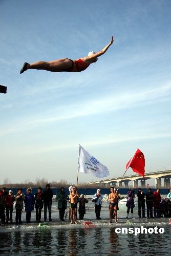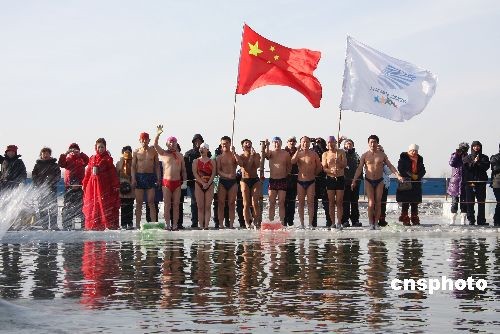 圖:大冬會(huì)倒計(jì)時(shí)10天 冬泳健兒激情表演助威(2)