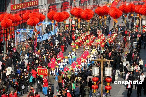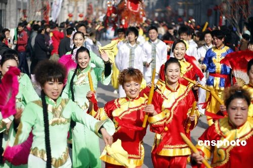 2月9日上午,來自北京、河北、山東等3個省市的12支花會隊(duì),在前門大街舉行“傳統(tǒng)民間花會踩街”活動,喜迎正月十五元宵節(jié)的到來。踩街是一種中國傳統(tǒng)民間民俗藝術(shù)表演形式,類似國外的花車游行,表演隊(duì)伍邊行進(jìn)邊表演,游客沿途觀看。花會隊(duì)從正陽門箭樓南側(cè)和前門五牌樓出發(fā),16只南獅和北獅為大隊(duì)人馬開道,隨后中幡、旱船、二魁摔跤、地秧歌、鼓子秧歌等將依次向珠市口行進(jìn)。