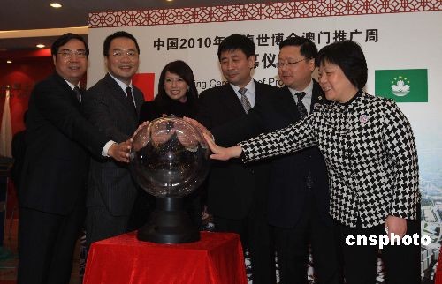 圖為上海世博局局長洪皓、上海世博會澳門籌備辦公室主任楊寶儀以及澳門世博辦率三十余人代表團出席了開幕亮燈儀式。