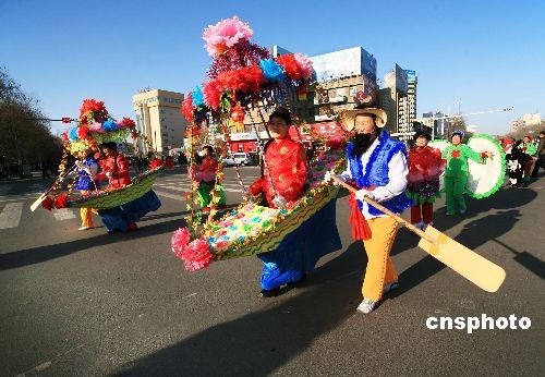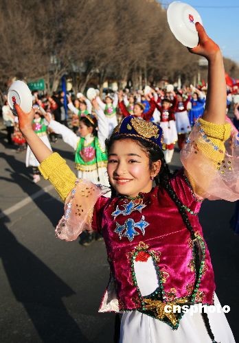 2月9日上午,新疆伊寧市舉行“鬧元宵”社火展演,來自全市20個鄉(xiāng)鎮(zhèn)、街道的1300余名農(nóng)牧民及社區(qū)工作人員走上街頭,舞龍獅、敲腰鼓、跳民族歌舞,敲出元宵節(jié)的快樂,舞出了邊疆各族兒女的豪邁激情。中新社發(fā) 留光駐影 攝