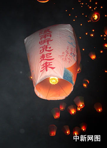 1月9日晚,由臺(tái)灣“交通部”觀光局和臺(tái)北縣政府主辦的“天燈讓兩岸亮起來”慶元宵活動(dòng)在臺(tái)灣天燈之鄉(xiāng)平溪舉行。記者 陳立宇 攝