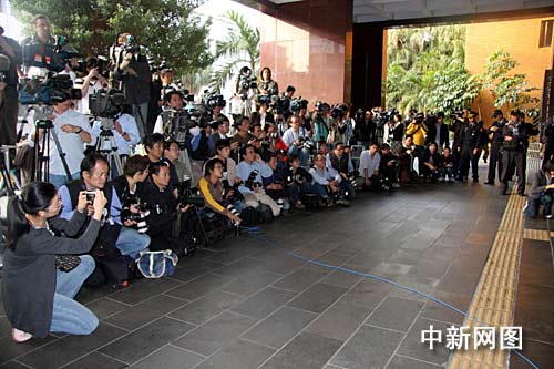 大批各路媒體記者集結(jié)在臺北地院門口候著吳淑珍出來。中新社記者 陳立宇 攝