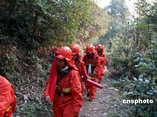 截至2月13日上午10點(diǎn)30分,福建沙縣山林火災(zāi)的明火得到總體控制,但參加撲救火災(zāi)的各方人員仍在和當(dāng)?shù)厝罕娨黄鹧采,?yán)防死灰復(fù)燃。12日12時(shí)30左右,福建沙縣高砂鎮(zhèn)端溪村突發(fā)森林火災(zāi),由于風(fēng)大,火勢迅速蔓延,已燒毀山林二千余畝。中新社發(fā) 穆長梓 攝