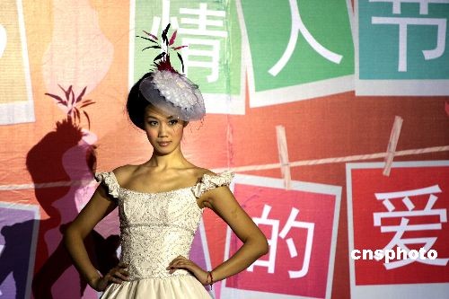 2月13日,情人節(jié)前夕,各商家紛紛想出辦法緊抓商機。某商家在商場內(nèi)為情人們奉獻上一場婚紗展,此展覽將持續(xù)三天,模特每天將分時段在商場T臺上為顧客展示多樣婚紗。中新社發(fā) 富田 攝