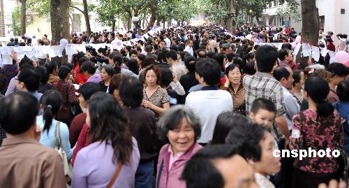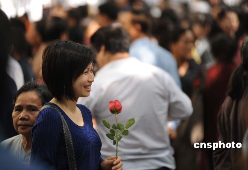 二月十四日,情人節(jié),廣西南寧市組織大型相親交友活動。這場名為“媽媽相親團”的交友活動,由于交友過程可由父母代勞,得到當?shù)厍嗄甑臒崃掖蹬,當天有超過一萬名青年報名參與相親,場面十分火爆,眾多父母到場為兒女相親。中新社發(fā) 蔣雪林 攝