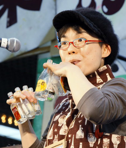 一名表演者在用玻璃瓶演奏音樂(lè)。