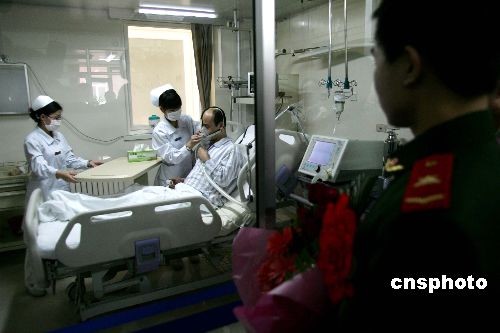 圖:央視新址大火救火英雄康復(fù)出院(2)