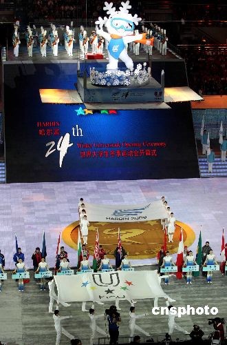 2月18日,第24屆世界大學(xué)生冬季運(yùn)動會開幕式在哈爾濱國際會展中心體育館隆重舉行。“冰雪、青春、未來”,哈爾濱大冬會在熊熊圣火的映襯下揭開大幕,在未來10天內(nèi)來自45個參賽代表團(tuán)青春洋溢的冰雪健兒們將在賽場上展開競逐!本屆大冬會是中國首次承辦世界綜合性冬季體育盛會,也是繼北京奧運(yùn)會和殘奧會后中國又一次承辦的國際性賽事。中新社發(fā) 富田 攝