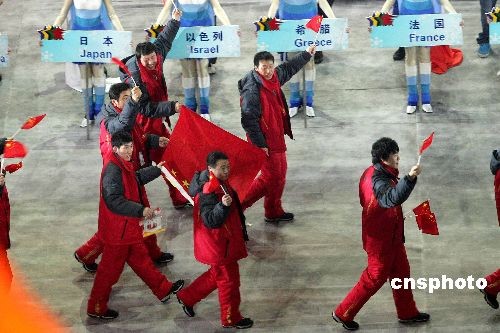圖為在開幕式上中國代表團入場。中新社發(fā) 富田 攝