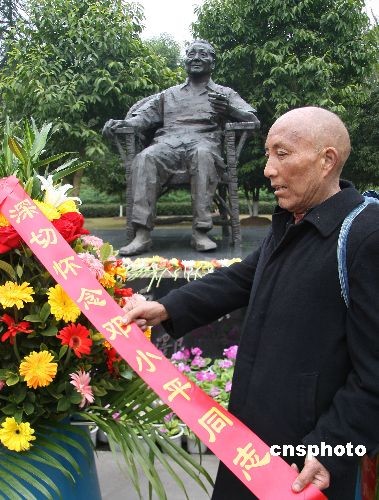 2月19日,廣安區(qū)協(xié)興鎮(zhèn)牌坊村村民在為小平銅像獻(xiàn)花以示懷念。當(dāng)日,是世紀(jì)偉人鄧小平逝世12周年紀(jì)念日,四川省廣安市和來自全國各地的各界人士紛紛自發(fā)前來為鄧小平銅像獻(xiàn)花以示深切懷念。中新社發(fā) 杜修戰(zhàn) 攝