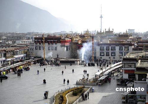 2月24日,中國(guó)藏歷年三十,大昭寺廣場(chǎng)一派祥和氣氛,迎接藏歷新年的到來(lái)。中新社發(fā) 廖攀 攝