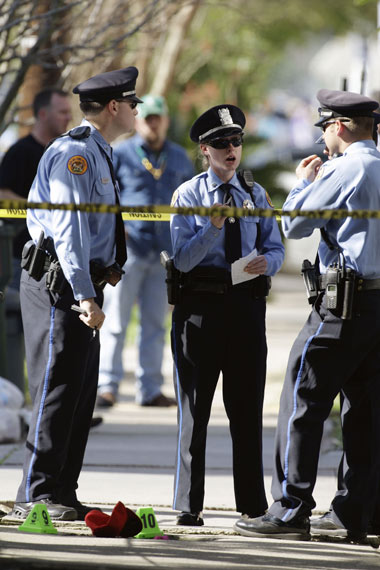 警察在現(xiàn)場調(diào)查槍擊案情況