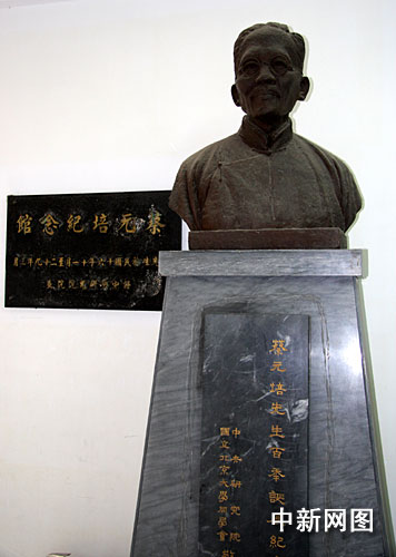 圖為臺北“中央研究院”蔡元培紀念館中的蔡元培塑像,由“中研院”原北京大學同學會敬立。蔡元培曾任北京大學校長、“中研院”院長。陳立宇 攝