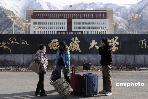 3月1日,西藏拉薩,西藏大學在拉薩東郊的新校園前,學生們陸續(xù)返回學校。西藏大學定于3月3日正式開學。中新社發(fā) 廖攀 攝