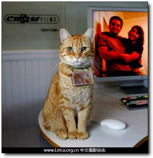 Cooper的主人是一對開畫廊的小夫妻,相機自然也是主人為Cooper特別制作的,當他戴上相機后,每2分鐘會自動拍下一張照片,他的第一份作品就是拍了張兩位主人擁抱的照片,你看,他還挺會拍馬屁的吧?