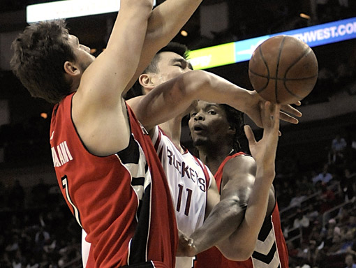 當(dāng)?shù)貢r(shí)間3月3日晚,中國球員姚明所在的NBA火箭在休斯頓主場(chǎng)以107比97擊敗猛龍,登上西部第三的位置。姚明拿下了20分11個(gè)籃板。