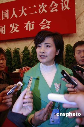 2009年3月4日,吳小莉參加十一屆全國人大二次會議新聞發(fā)布會時接受采訪,針對“香港如何應(yīng)對金融危機”這一話題回答了記者提問。中新社發(fā) 金立冬 攝