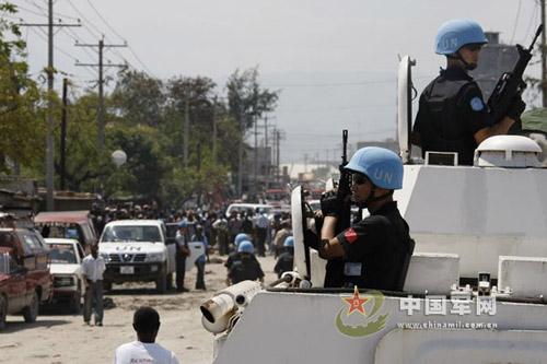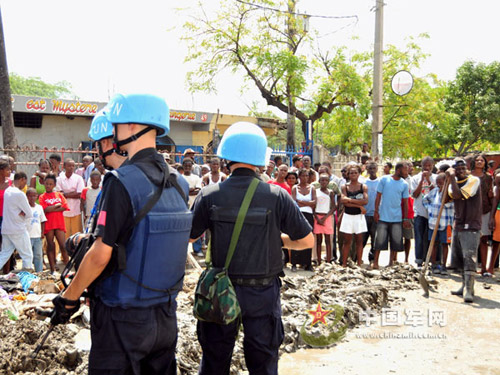 近日,300余名海地民眾在太陽城國家一號公路舉行游行示威,并設(shè)置路障,致使交通堵塞。中國第七支駐海地維和警察防暴隊根據(jù)聯(lián)海團指令,迅速趕往現(xiàn)場進行處置,成功化解了矛盾,及時恢復了交通。