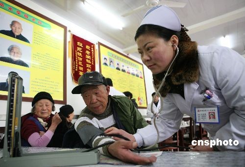3月5日,安徽蒙城縣第一人民醫(yī)院的青年志愿者攜帶有關(guān)診療器械,來到縣民政局光榮敬老院義務(wù)為這里的老人們測量血壓、檢查身體,并接受老年健康咨詢,以實際行動傳承雷鋒精神。中新社發(fā) 胡衛(wèi)國 攝