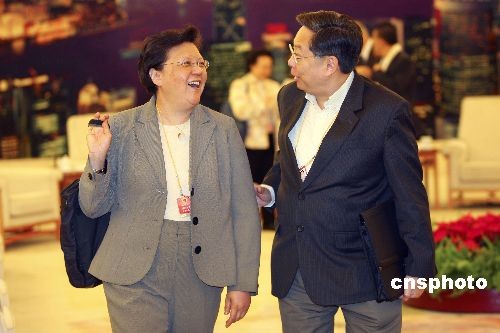 3月6日,十一屆全國人大二次會(huì)議舉行小組會(huì),審議政府工作報(bào)告。圖為全國人大代表范徐麗泰在參會(huì)時(shí)與其他代表交談。中新社發(fā) 盛佳鵬 攝