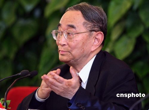 全國政協(xié)常委、著名經(jīng)濟學家厲以寧在3月6日下午舉行的全國政協(xié)十一屆二次會議記者會上說,當前樓價居高不下,原因是地價高。他還回答了關(guān)于上調(diào)資源增值稅的說法和提高勞動收入在國民收入中分配比例等問題。中新社發(fā) 宋吉河 攝