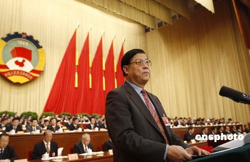 3月7日,全國政協(xié)十一屆二次會議在北京人民大會堂舉行第二次全體會議。許善達(dá)委員代表全國政協(xié)經(jīng)濟委員會作題為《把增加居民消費作為最優(yōu)先的目標(biāo)之一》的發(fā)言。中新社發(fā) 盛佳鵬 攝