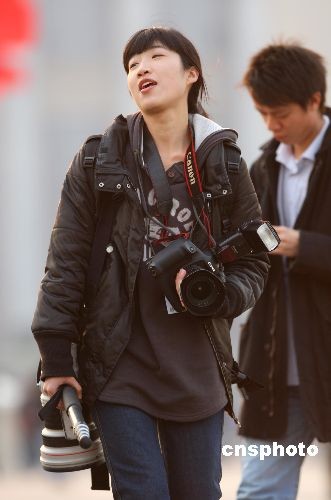 3月8日國際婦女節(jié),采訪全國政協(xié)大會的女記者身背“長槍短炮”走出會場。當日上午,全國政協(xié)十一屆二次會議會議在北京人民大會堂舉行第三次全體會議。中新社發(fā) 盛佳鵬 攝