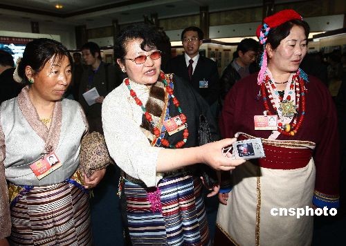 圖:藏族女代表在京參觀西藏民主改革50年展