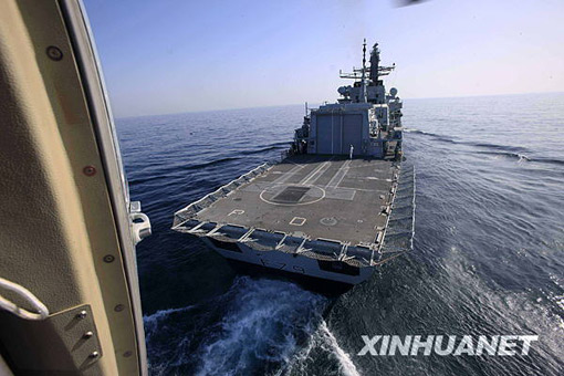 3月9日,在巴基斯坦南部卡拉奇港附近的阿拉伯海舉行的“和平-09”海上多國(guó)聯(lián)合軍事演習(xí)實(shí)兵演練中,中國(guó)海軍艦載直升機(jī)準(zhǔn)備在英國(guó)皇家海軍“波特蘭”號(hào)護(hù)衛(wèi)艦上降落。