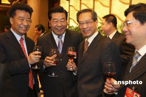 圖:賈慶林向港澳地區(qū)全國政協(xié)委員敬酒