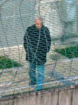 日前,弗萊茨勒在監(jiān)獄里放風(fēng)時(shí)的照片被媒體公布,從這組照片中我們看到,弗萊茨勒穿著藍(lán)色的牛仔褲和高領(lǐng)的黑色夾克,頭低垂,眼睛盯著地面,手深深地插在上衣口袋里。他在監(jiān)獄的空場上一個(gè)人轉(zhuǎn)著圈子踱步,周圍是數(shù)米高帶著鐵絲網(wǎng)的監(jiān)獄圍墻。