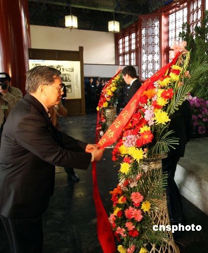 全國(guó)人大常委會(huì)副委員長(zhǎng)、民革中央主席周鐵農(nóng)代表民革中央向?qū)O中山先生像敬獻(xiàn)花籃。