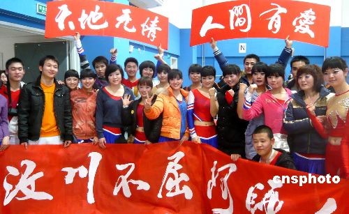 圖為四川汶川地震災區(qū)阿壩師專的學生北京參加健美操大賽。中新社發(fā) 錢興強 攝