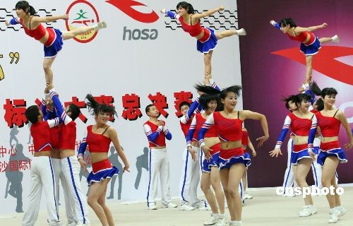 圖:汶川學(xué)生熱淚盈眶北京演繹健美操(4)