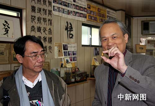 3月14日,由臺(tái)北縣政府文化局委托的專(zhuān)家組在“臺(tái)北縣博物館家族”之一的陳逢顯毫芒雕刻博物館內(nèi)調(diào)研。圖為臺(tái)灣著名微雕家陳逢顯(右一)向?qū)<医M成員展示他以臺(tái)北故宮博物院所藏“多寶閣”果核微雕作品為范本,正在以橄欖核進(jìn)行雕刻的作品。 作者:陳立宇