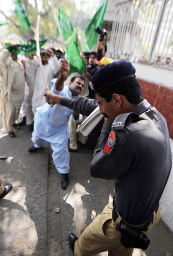 3月15日,巴基斯坦前總理謝里夫的支持者在拉合爾舉行抗議集會時與警察發(fā)生沖突。