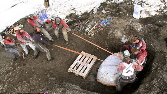挪威古生物學(xué)者許魯姆率領(lǐng)的考察隊,在挪威斯瓦爾巴群島發(fā)掘一具生存于距今1.5億年前侏羅紀時期的一只長達15米的古老爬行動物的化石。