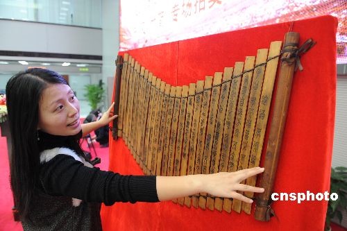 圖:最后一批“奧運(yùn)缶”及“竹簡(jiǎn)”在京拍賣(mài)(3)