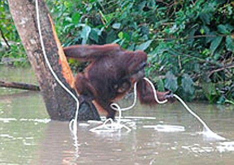 據(jù)英國(guó)媒體報(bào)道,一只馬來(lái)西亞的紅毛猩猩近日為了救自己的孩子,奮不顧身跳進(jìn)洪水將孩子安全背到岸邊,野生動(dòng)物保護(hù)組織官員用照相機(jī)記錄下了這一壯舉。