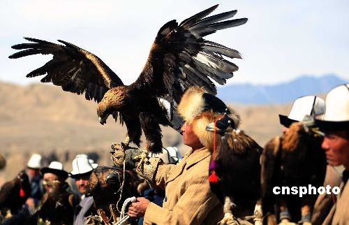3月20日,位于新疆西部天山南脈腹地的阿合奇縣舉辦第二屆獵鷹節(jié),當(dāng)?shù)乜聽柨俗巫迕癖娋奂谠摽h賽馬場,展示自家馴養(yǎng)的上百只獵鷹。當(dāng)?shù)乜聽柨俗巫羼Z養(yǎng)獵鷹有著悠久的歷史,至今仍完整保留著原始的馴養(yǎng)方式,被譽(yù)為中國“獵鷹之鄉(xiāng)”,當(dāng)?shù)乜聽柨俗巫逡脖蛔u(yù)為“鷹王”。他們在放牧的同時(shí),經(jīng)常騎馬到高達(dá)近百米的高山頂上,將自己馴養(yǎng)的獵鷹放飛。中新社發(fā) 劉新 攝