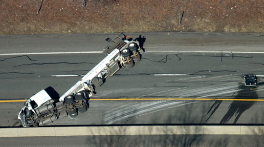 圖:美國(guó)一運(yùn)載有害化學(xué)物卡車在公路翻車(2)