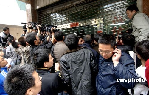 圖為大批媒體記者蜂擁現場進行采訪。