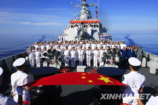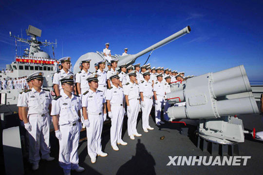 “廣州”艦全體官兵日前在巴基斯坦舉行的“和平-09”多國(guó)聯(lián)合軍事演習(xí)中出色完成了各項(xiàng)演習(xí)任務(wù),充分展示了中國(guó)海軍威武之師、文明之師、和平之師和勝利之師的良好形象,促進(jìn)了與參演各國(guó)海軍的交流與合作,增進(jìn)了中巴兩國(guó)、兩軍的互信與友誼。