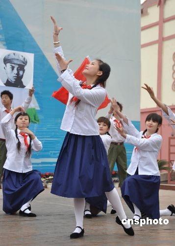 3月25日,長沙世界之窗舉辦的校服秀展示了新中國成立60年來不同時期的中小學(xué)生校服,勾起了不少市民孩童時的回憶。中新社發(fā) 肖前輝 攝