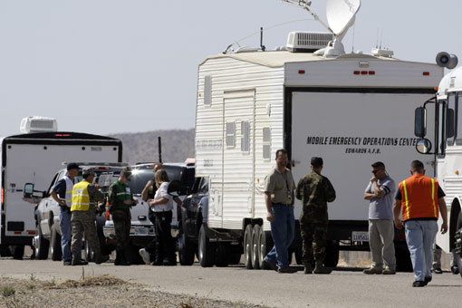 緊急行動小組準(zhǔn)備進(jìn)入飛機(jī)失事領(lǐng)域。