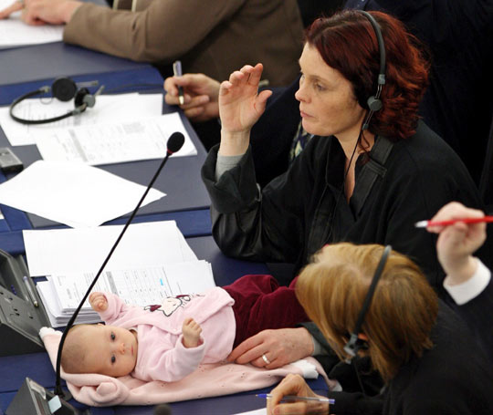 3月26日,丹麥議員漢娜·達爾在法國斯特拉斯堡參加歐洲議會會議,她的小寶寶也隨著她一起“出席”。