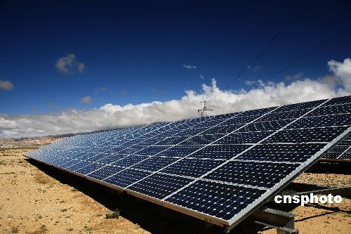 3月26日消息,隨著世界光伏產(chǎn)業(yè)的迅速發(fā)展,在空曠地區(qū)建設大規(guī)模光伏電站越來越受到人們的矚目。羊八井光伏電站就是我國第一座與高壓電網(wǎng)并聯(lián)運行的光伏電站,發(fā)出的電能并入藏中電網(wǎng),供給拉薩市及周邊地區(qū)使用。經(jīng)過一年的實際運行計量表明該電站年發(fā)電量為18.3萬度左右,可以滿足約150戶居民的日常用電需求,每年可以節(jié)約75噸標準煤,減排二氧化碳275噸。羊八井100Kwp光伏示范電站在國內首次采用直接并入10kv高壓電網(wǎng)的技術方案,在不影響原有電網(wǎng)的結構和安全穩(wěn)定的情況下,為進一步在西藏地區(qū)推廣太陽能并網(wǎng)發(fā)電做出了示范。中新社發(fā) 扎西朗杰 攝